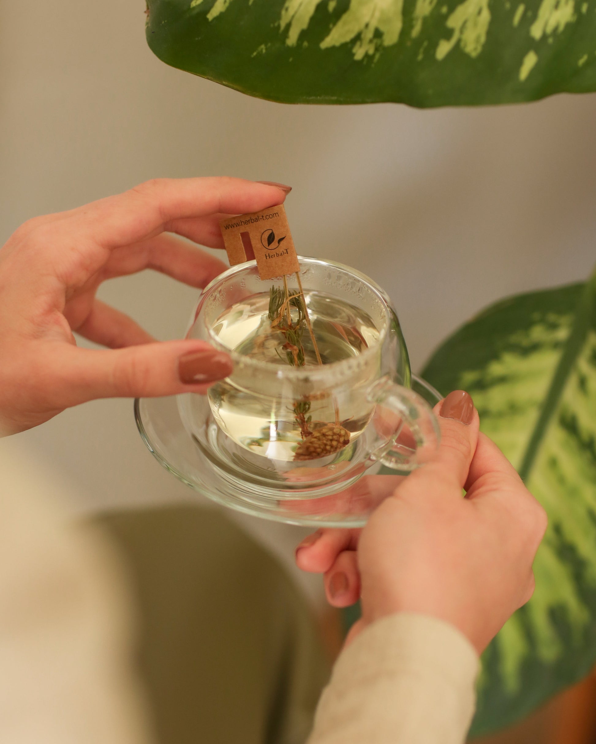 Pon a hervir agua fresca filtrada y deja que se enfríe un poco. Simplemente infunda sus tallos directamente en el agua durante 3 minutos para liberar los colores, fragancias y sabores únicos de cada planta individual.